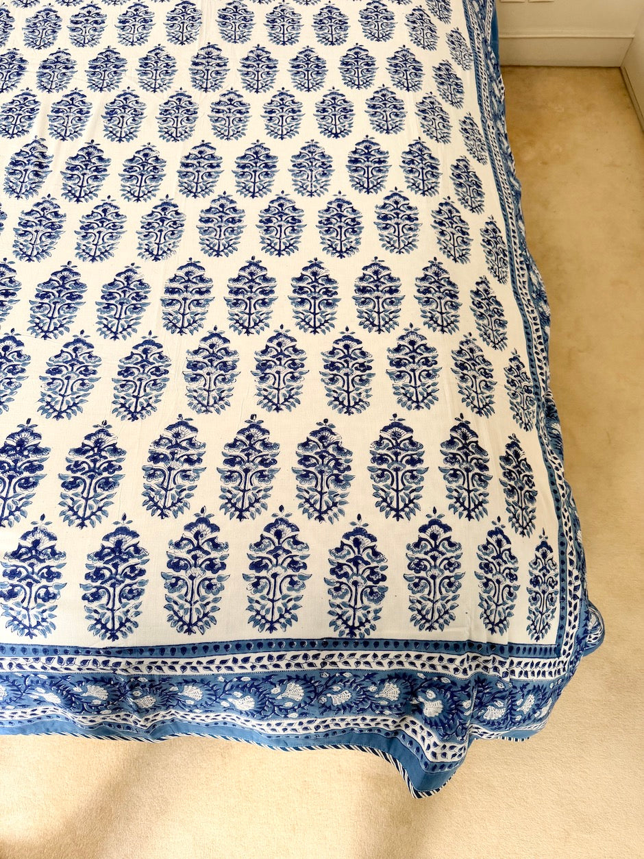 Notre dessus de lit Azul est fabriqué avec 3 couches de mousseline de coton cousues...
