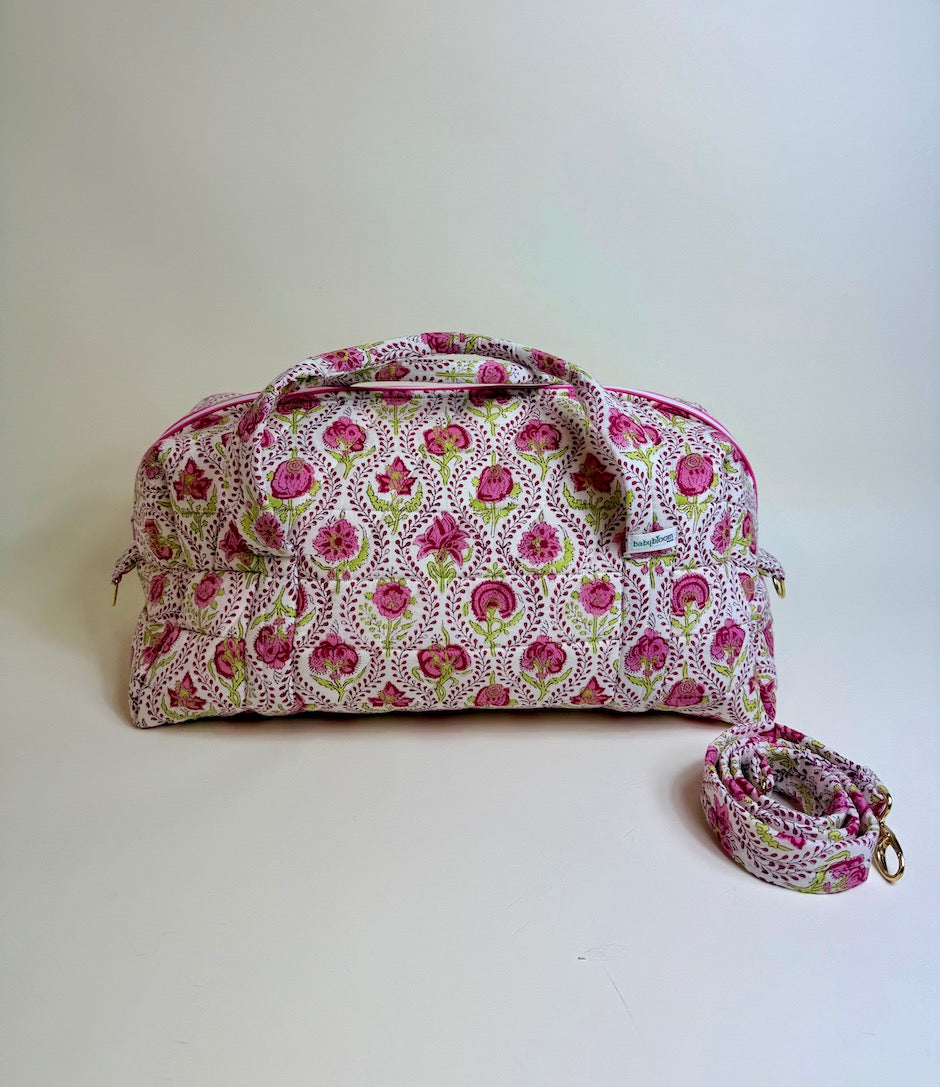 Le sac à langer Cyclamen est matelassé et doublé de plastique pour un entretien facile...