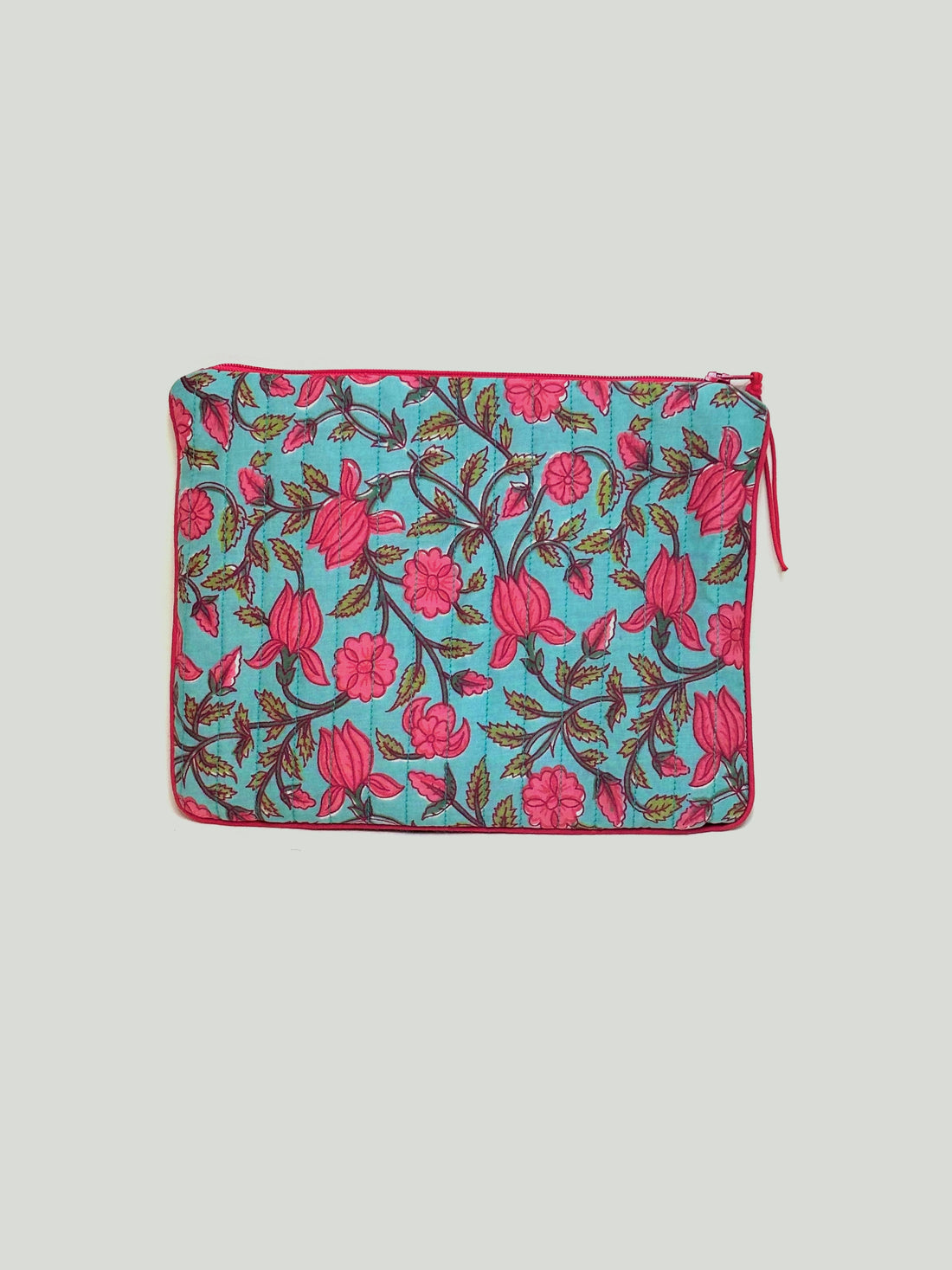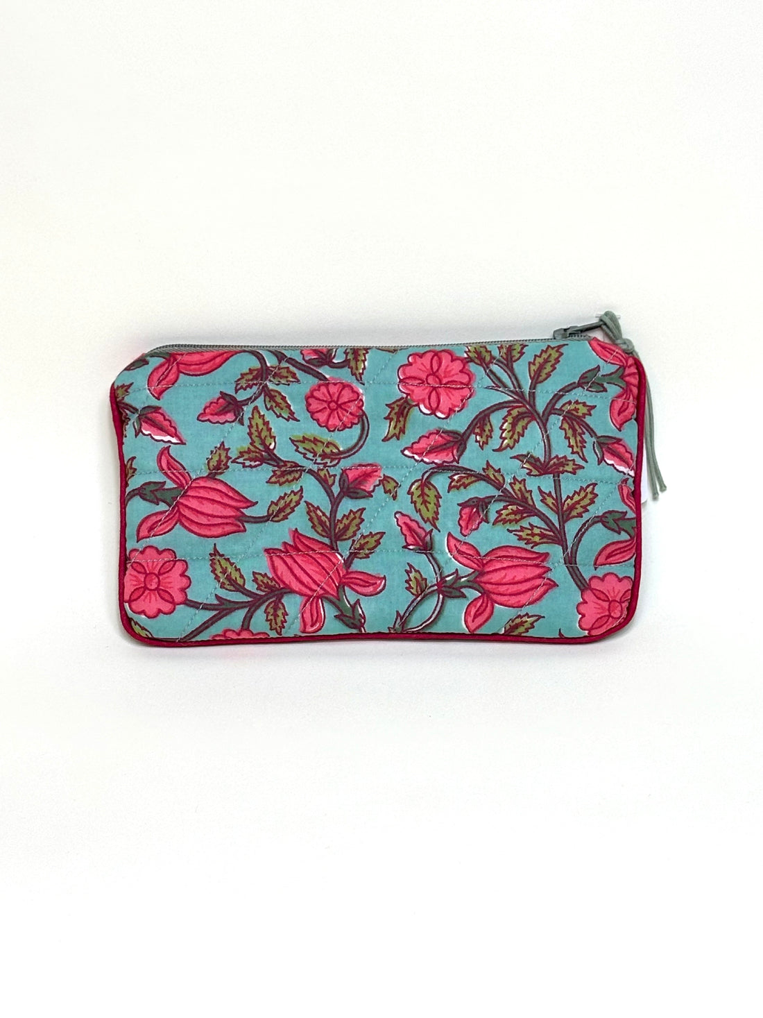 This small, flat, yellow and red Begonia pouch in quilted cotton, trimmed with piping, will...