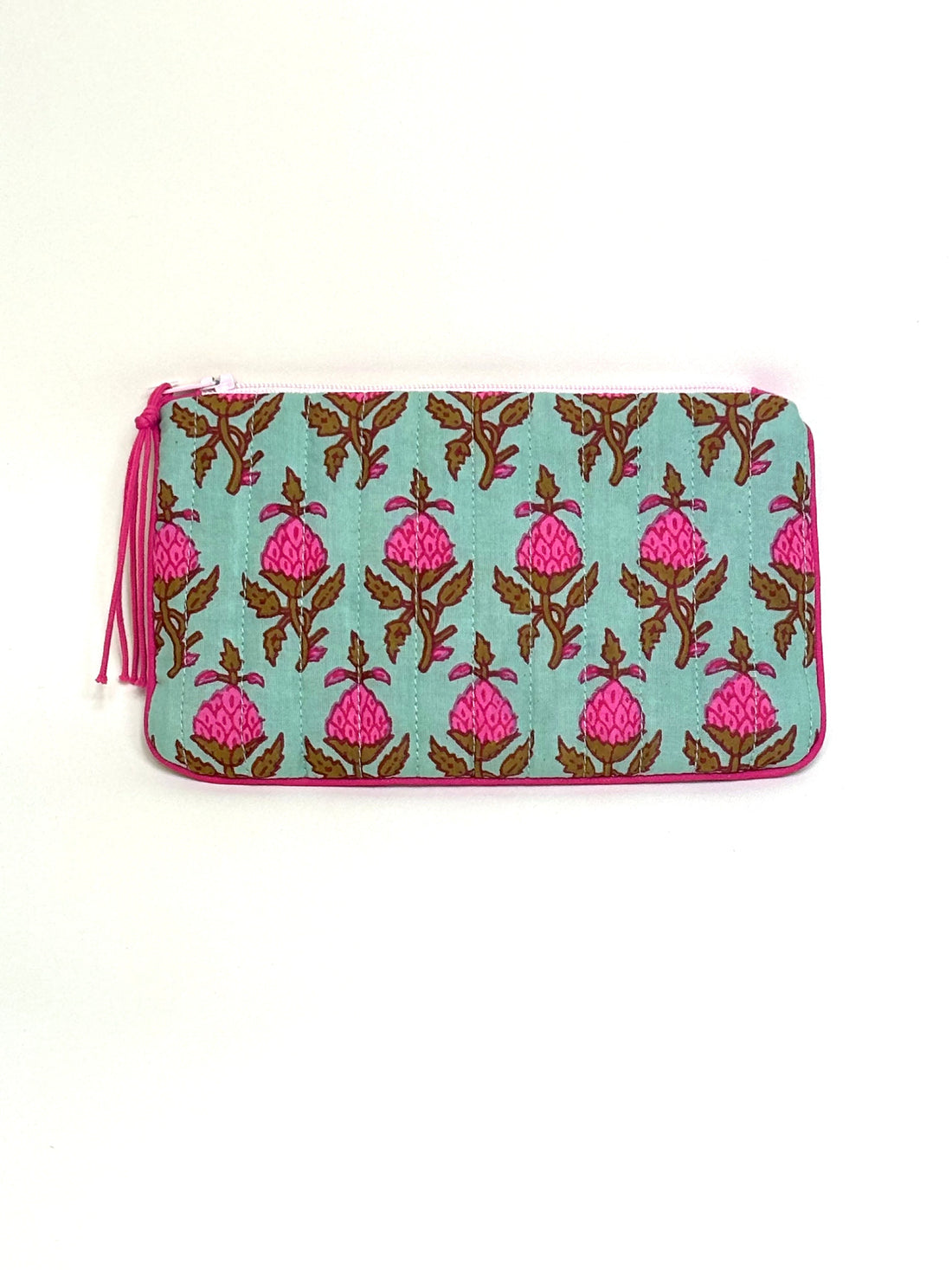 This small, flat mint green and pink Pivoine pouch is perfect for storing all your...