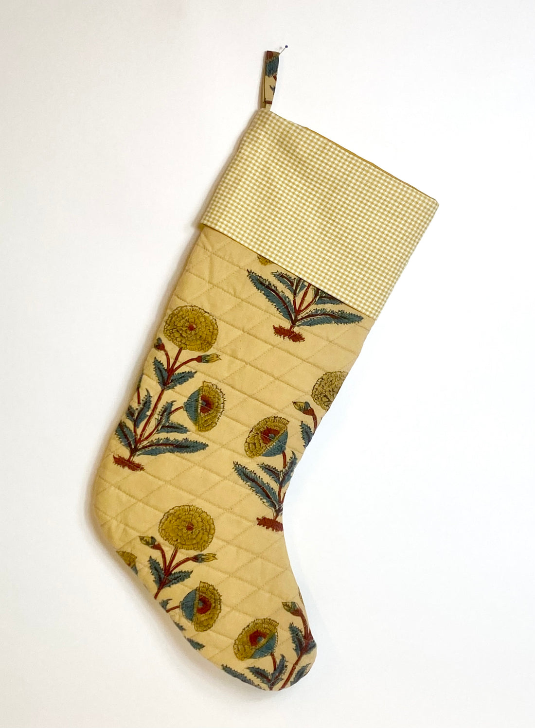 The BloomParis Christmas stockings are handmade in India, in the region where the art of block printing reigns supreme. Printed on brightly colored, cheerful cotton fabrics, they bring a unique, handcrafted touch to your holiday décor. Hung by the fireplace, on a doorknob, or at the foot of the tree, they’ll charmingly hold small gifts and thoughtful surprises.