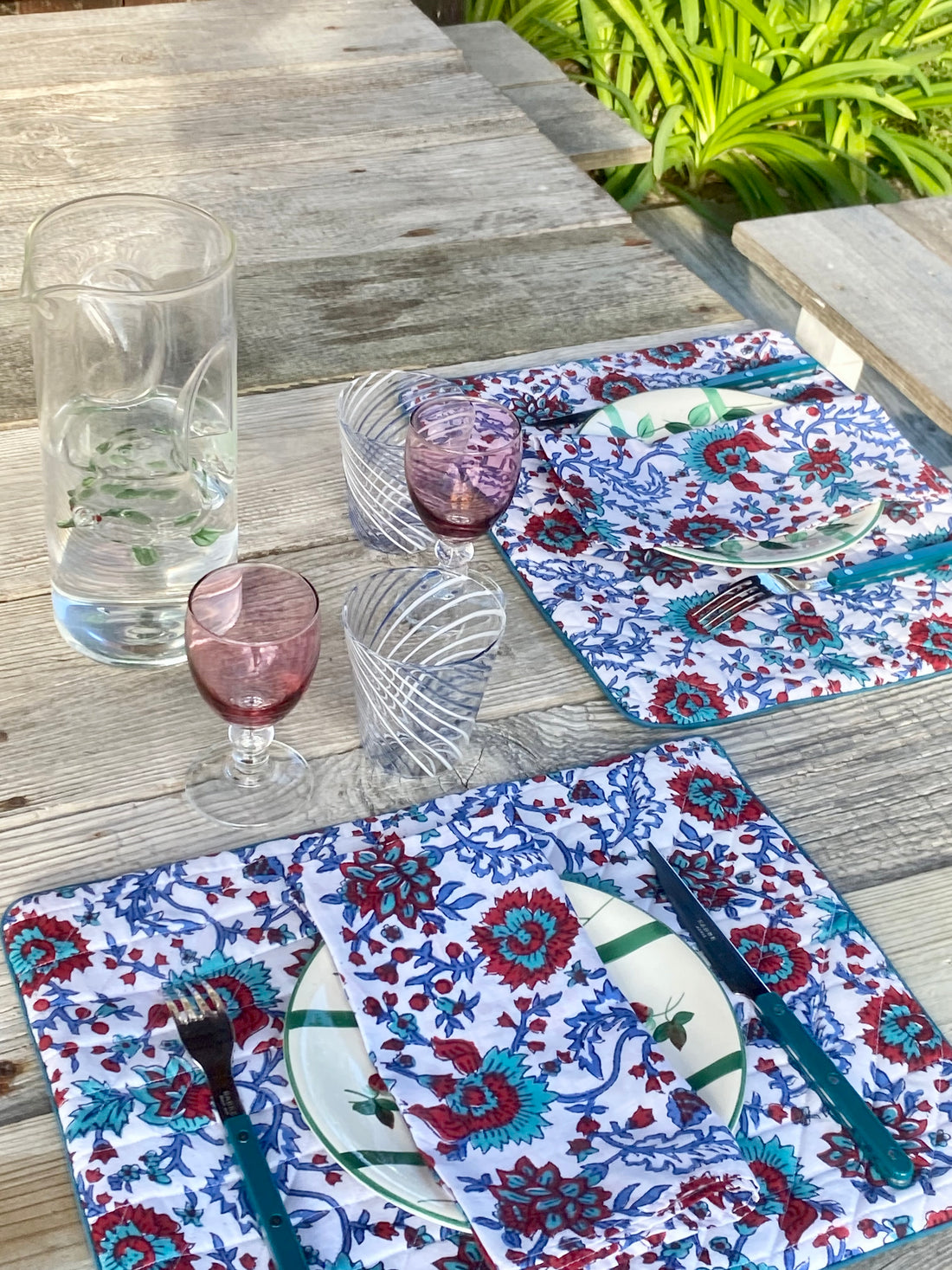 Our quilted placemats, paired with their coordinated napkins, will bring comfort and sophistication to your tables. Whether placed directly on the table or atop a tablecloth, they’re sure to impress your guests! Mix and match them according to your inspirations. An endless and free union of patterns, each more elegant and brighter than the last.