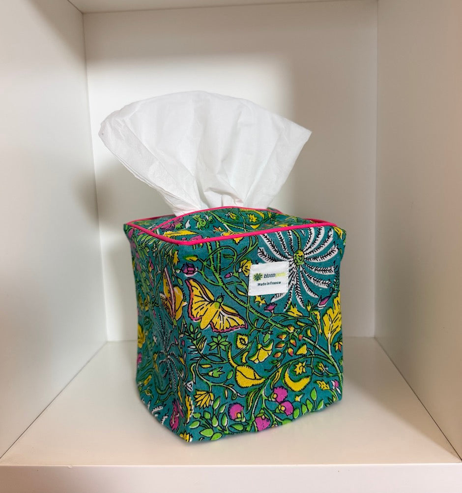 This Tropical tissue box cover is not only functional, but also adds a decorative touch to your space. It was created to hide unsightly tissue boxes. It can be used in various rooms of the house, such as the bathroom, bedroom, or even your workplace. Our cover fits perfectly on standard tissue boxes thanks to its elastic.
