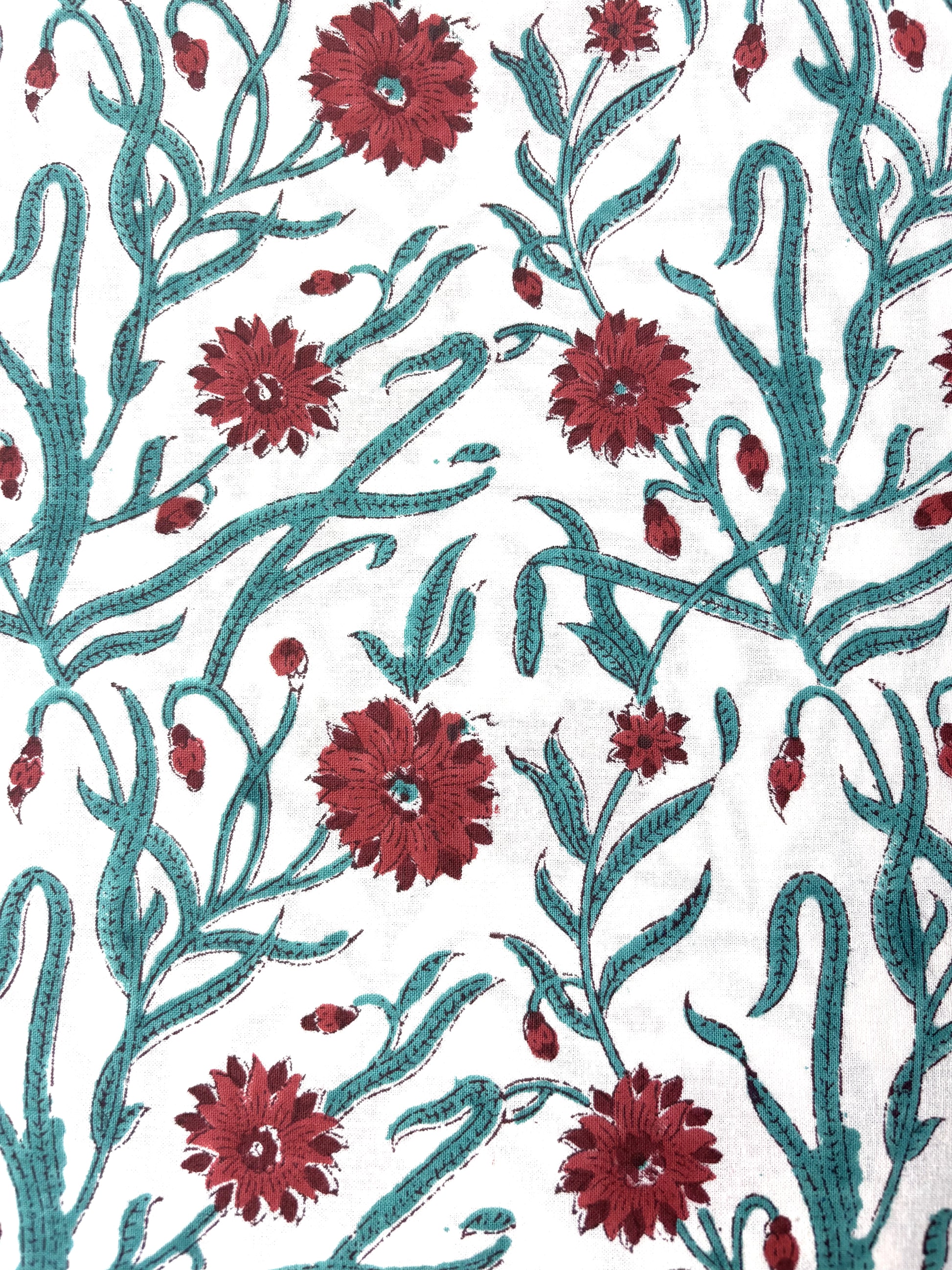At the intersection of traditional craftsmanship and contemporary design, our block-printed cotton tablecloths transform every meal into a celebration of color and sophistication. The Hortense tablecloth, with its rust-colored and duck-egg blue flowers on a white background, is a must-have at BloomParis. It will bring a touch of chic to your meals and your home.