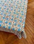 At the intersection of traditional craftsmanship and contemporary design, our block-printed cotton tablecloths transform every meal into a celebration of color and sophistication. The Thuya tablecloth, with its rust-colored and duck-egg blue flowers on a white background, is a must-have at BloomParis. It will bring a touch of chic to your meals and your home.