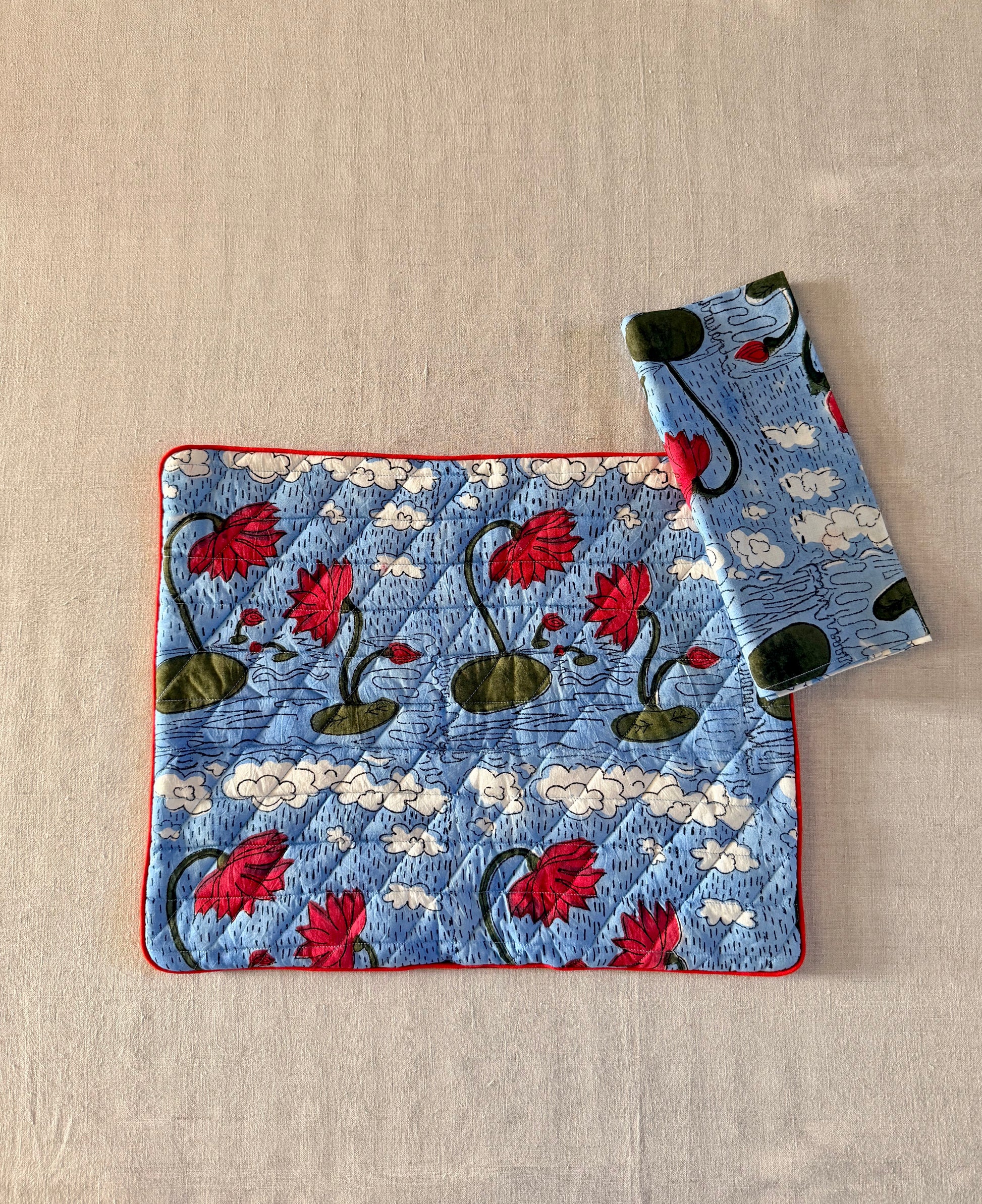 100% cotton quilted set, piping, 100% cotton voile napkin