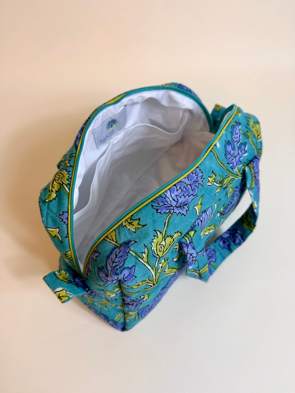 The Giroflée toiletry bag is quilted and features 4 interior pockets. It's a practical and functional accessory for organizing and carrying all your toiletries. Its plastic-coated interior makes your bag waterproof and easy to clean, in case a cream happens to leak...