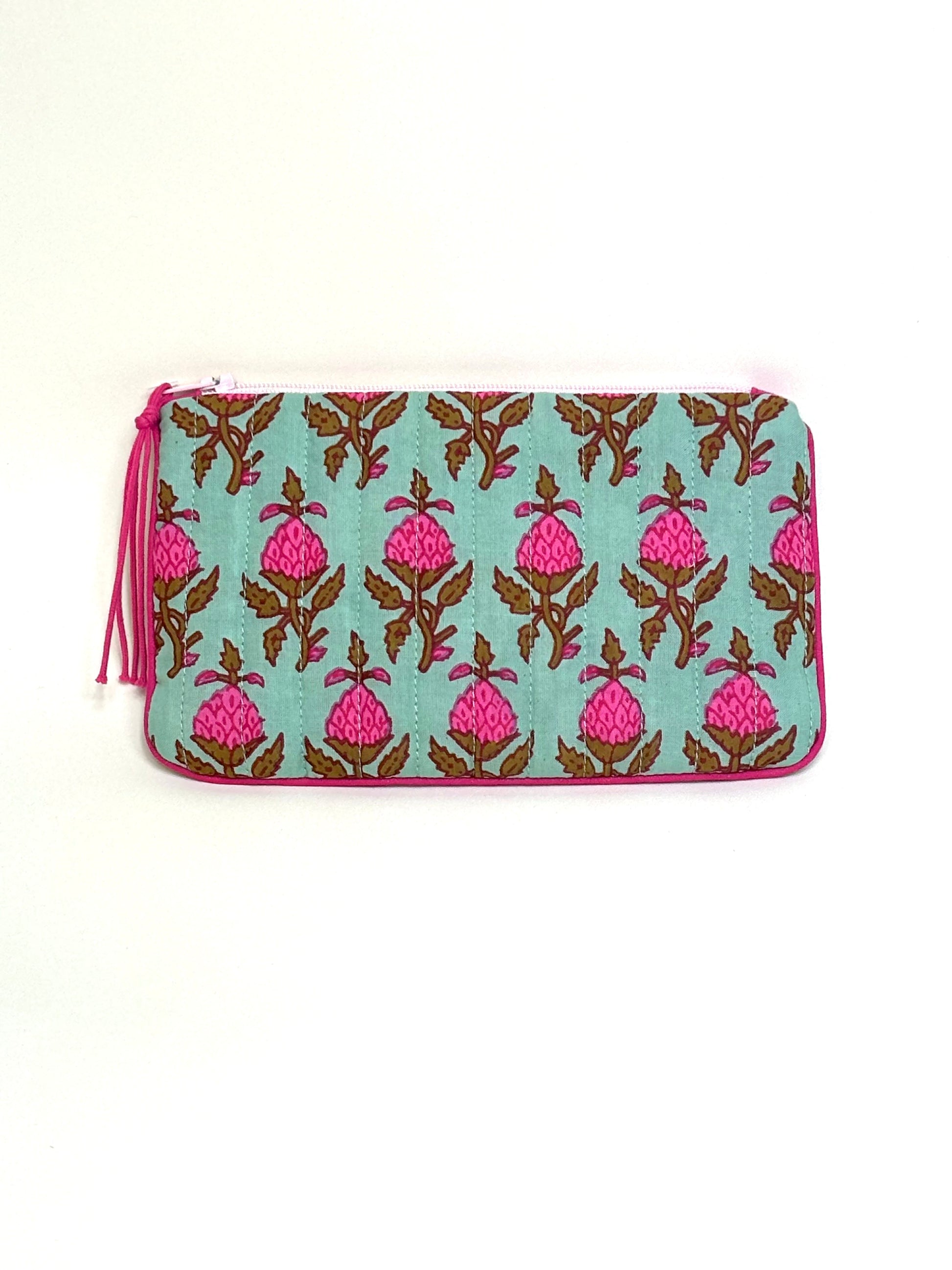 This small Pamplemousse flat pouch is ideal for storing all your papers, money, makeup, medication, keys, etc. It's quilted, trimmed with piping, and hand-sewn in our Parisian workshop. It's also the perfect little gift.