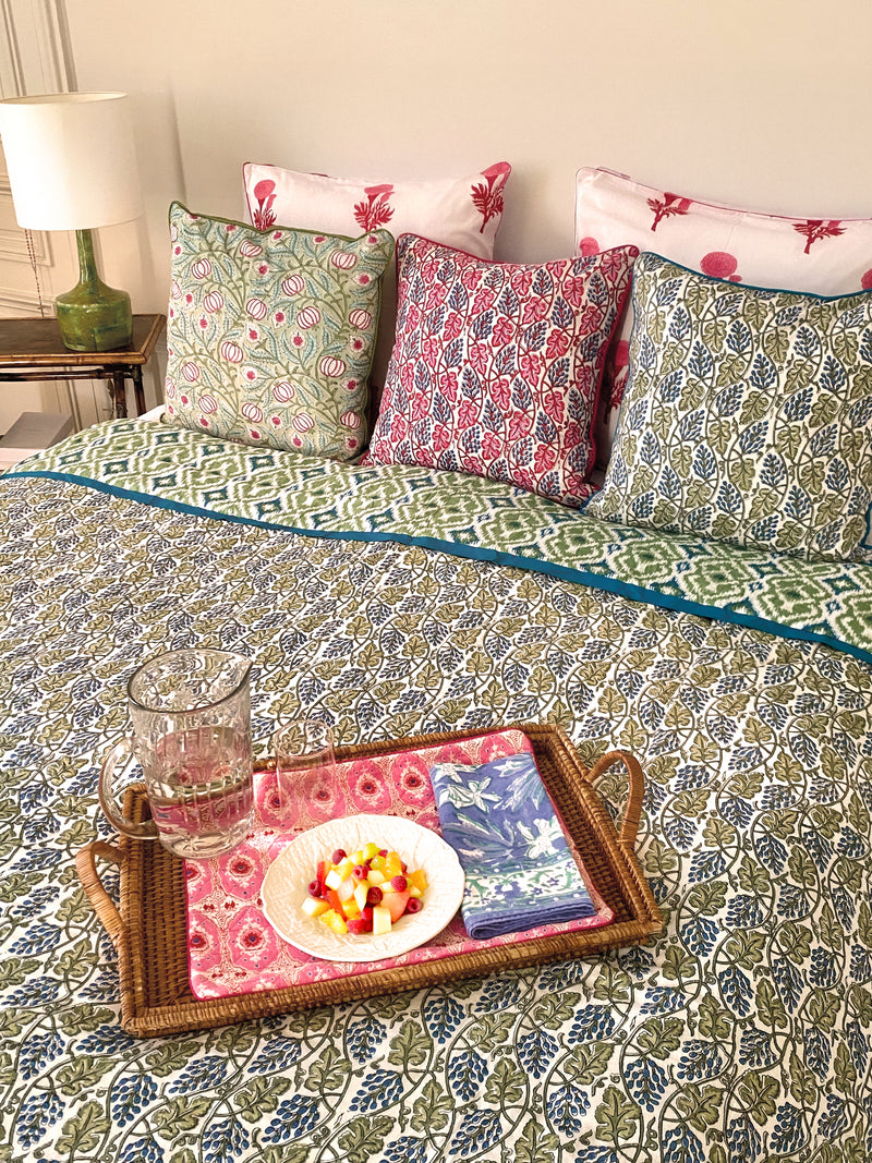 Oreillers douillets, coussins élégants, courtepointe cocooning et set de table aux couleurs chatoyantes sont la promesse d'une belle journée ensoleillée.