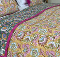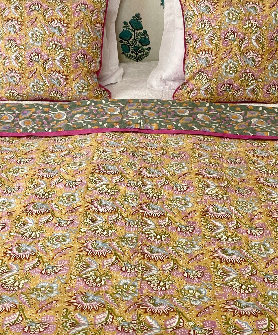 La courtepointe est un classique chez BloomParis. Fabriquée et cousue à la main dans notre atelier de Pondichéry, elle est recto verso pour vous permettre d'alterner les couleurs. Toujours moelleuse, la courtepointe Bali vous apportera confort et sophistication.