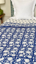 Notre dessus de lit Azul est fabriqué avec 3 couches de mousseline de coton cousues ensemble. Il est réversible et peut être utilisé des deux côtés, en été comme lors d'un hiver doux. Sa couleur bleu marine apportera du chic à votre lit et à votre chambre.