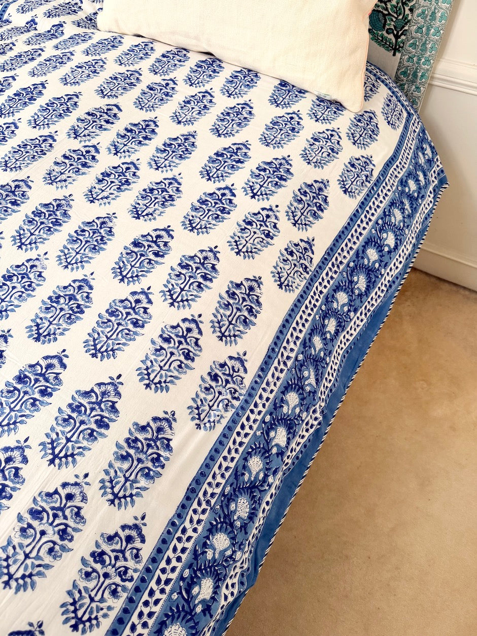 Notre dessus de lit Bonzaï est fabriqué avec 3 couches de mousseline de coton cousues ensemble. Il est réversible et peut être utilisé des deux côtés, en été comme lors d'un hiver doux.