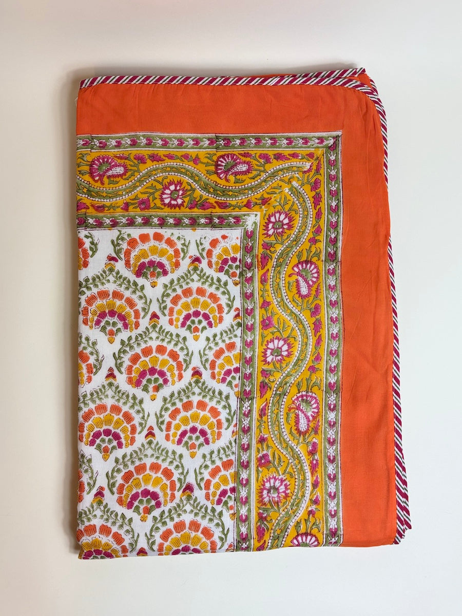 Notre dessus de lit Clémentine est fabriqué avec 3 couches de mousseline de coton cousues ensemble. Il est réversible et peut être utilisé des deux côtés, en été comme lors d'un hiver doux. Ses couleurs jaune et orange donneront du peps à votre lit et à votre chambre.