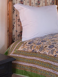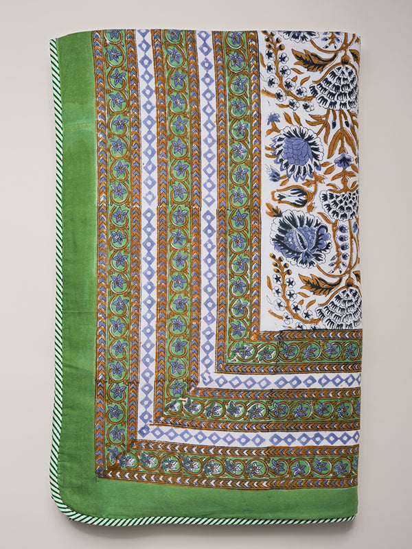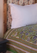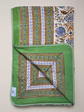 Notre dessus de lit Feuillage orange est fabriqué avec 3 couches de mousseline de coton cousues ensemble. Il est réversible et peut être utilisé des deux côtés, en été comme lors d'un hiver doux. Ses couleurs vert et bleu donneront du peps à votre lit et à votre chambre.