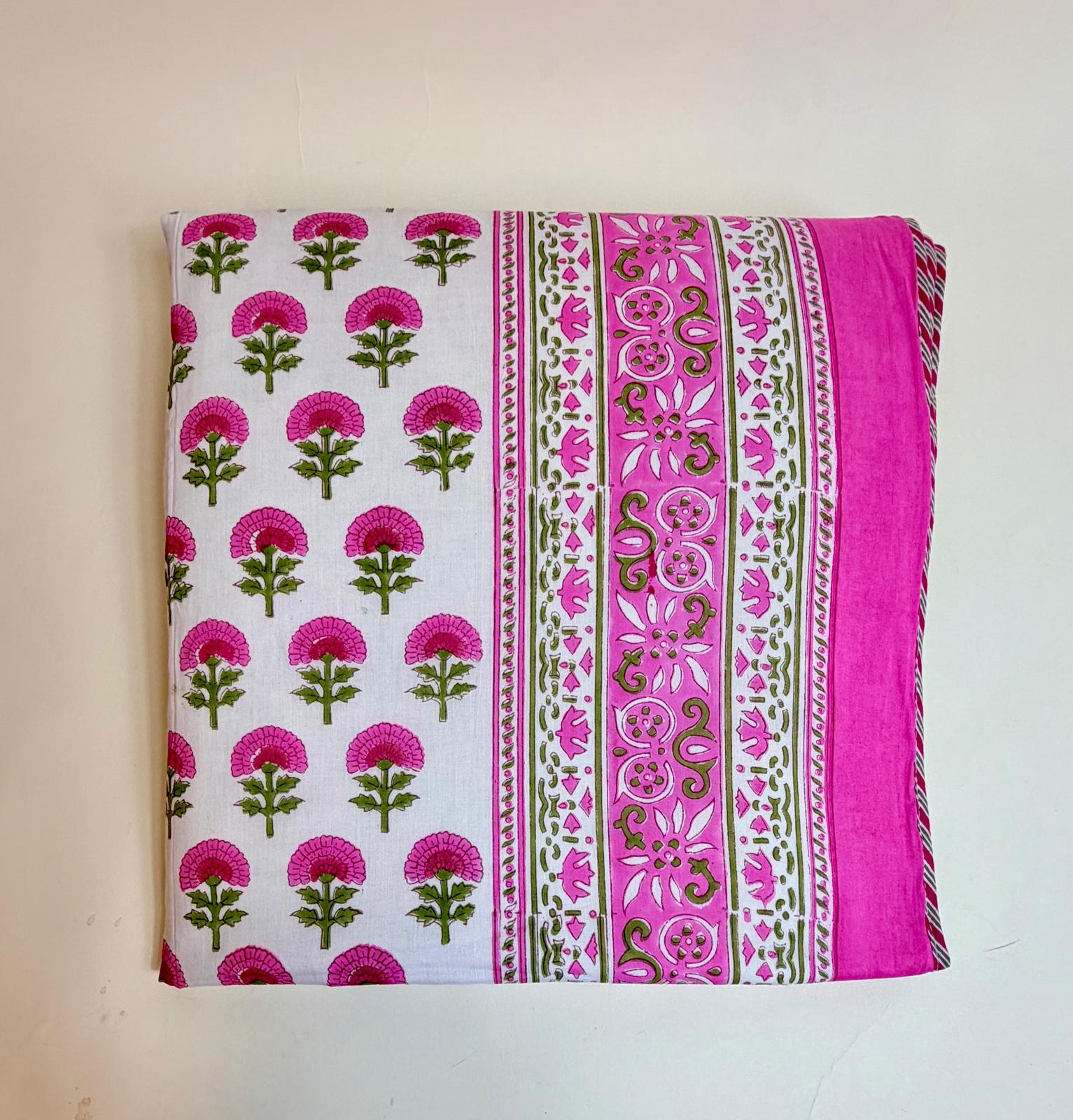 Notre dessus de lit Rosette est fabriqué avec 3 couches de mousseline de coton cousues ensemble. Il est réversible et peut être utilisé des deux côtés, en été comme lors d'un hiver doux.