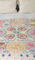 Le jeté de lit Macha est un suzani. C'est un textile brodé originaire d’Asie centrale. Celui-ci vient d’Ouzbékistan. Ce sont des pièces artisanales uniques souvent réalisées en deux, voire en plusieurs morceaux, cousus ensemble par la suite. Les coutures sont donc apparentes et des traces de crayon peuvent apparaître sur le tissu car elles en sont la trame. Ce suzani de grande taille est un véritable objet de décoration pour votre lit, votre chambre, votre canapé ou encore exposé sur un mur.