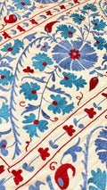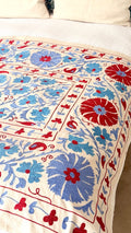 Le jeté de lit Milky Way est un suzani. C'est un textile brodé originaire d’Asie centrale. Celui-ci vient d’Ouzbékistan. Ce sont des pièces artisanales uniques souvent réalisées en deux, voire en plusieurs morceaux, cousus ensemble par la suite. Les coutures sont donc apparentes et des traces de crayon peuvent apparaître sur le tissu car elles en sont la trame. Ce suzani de grande taille est un véritable objet de décoration pour votre lit, votre chambre, votre canapé ou encore exposé sur un mur.