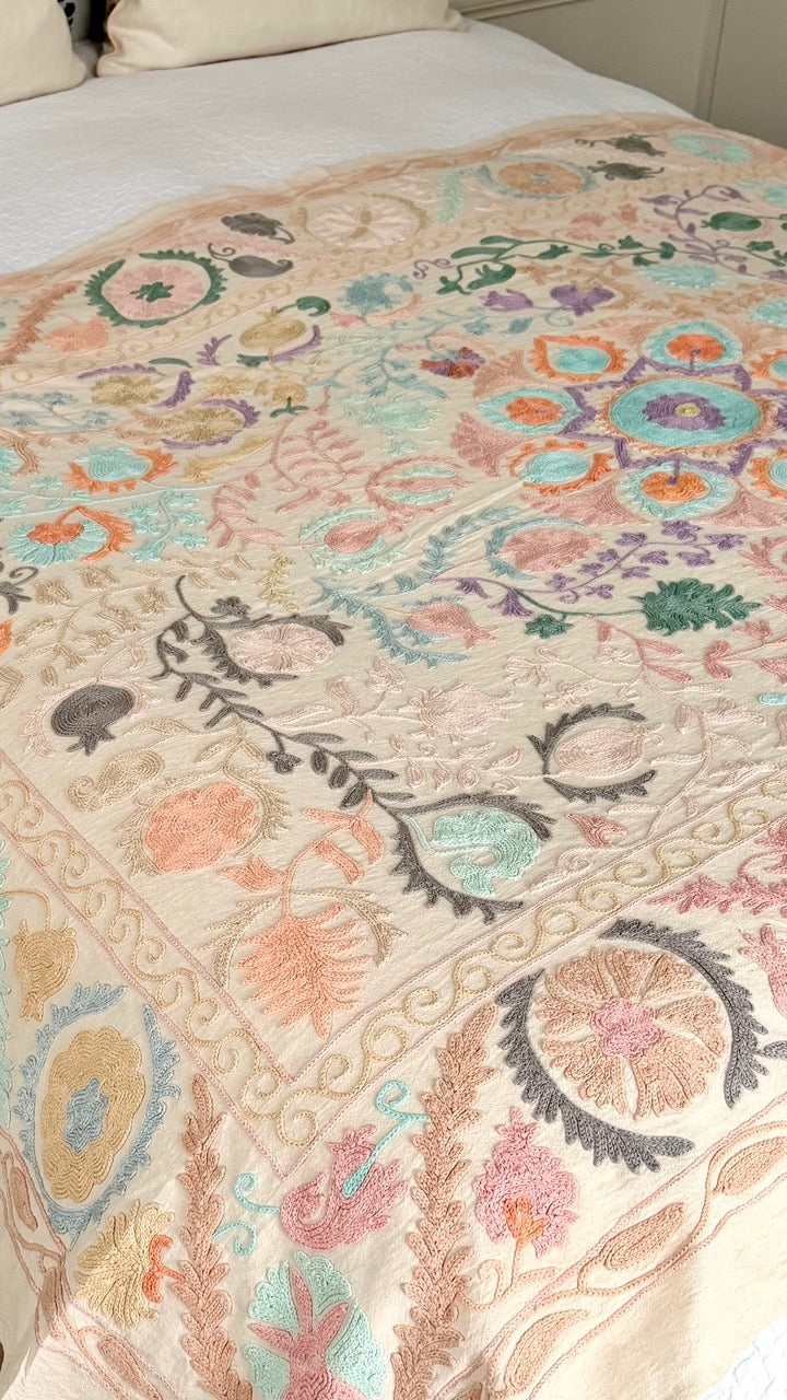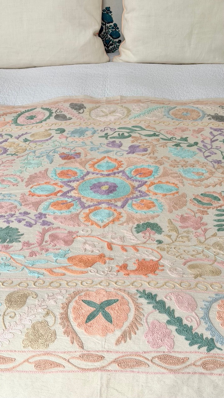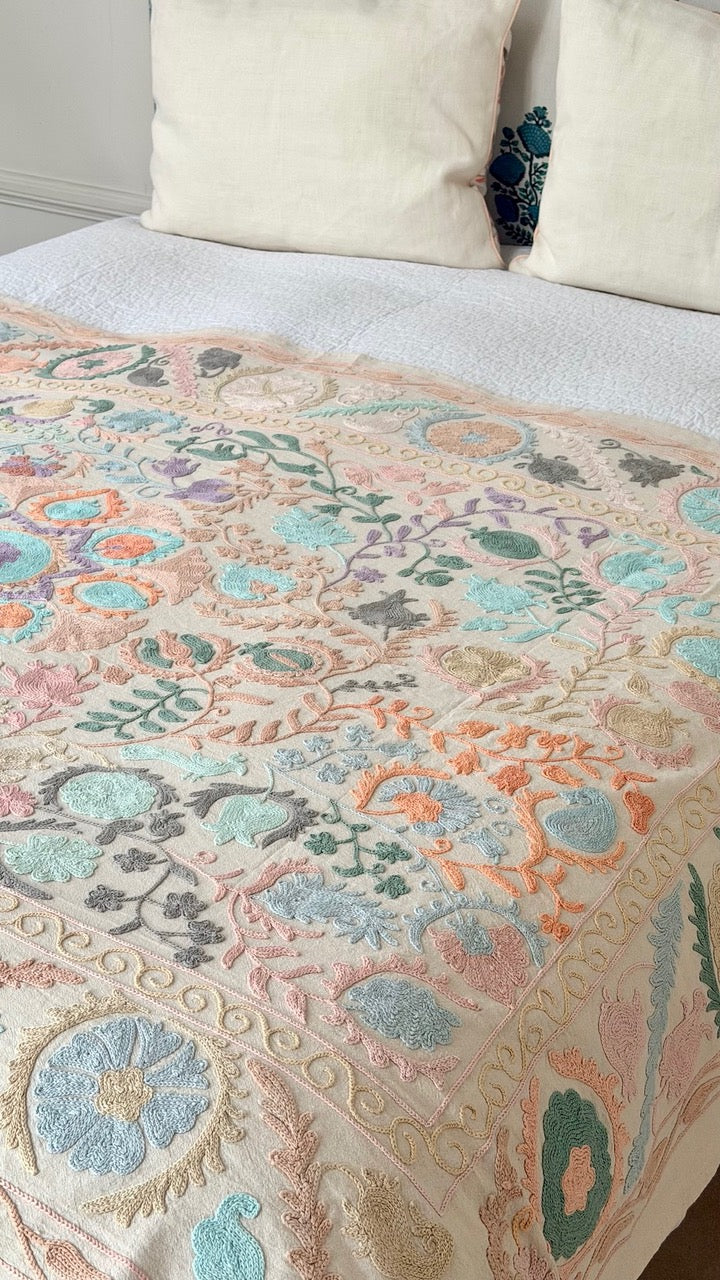 Jeté de lit Suzani Pastels