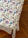 A la croisée de l'artisanat traditionnel et du design contemporain, nos nappes en coton imprimées au blockprint transforment chaque repas en une célébration de couleurs et de sophistication. L'imprimé Clematite habillera votre table, mais aussi la pièce dans laquelle elle se trouve!