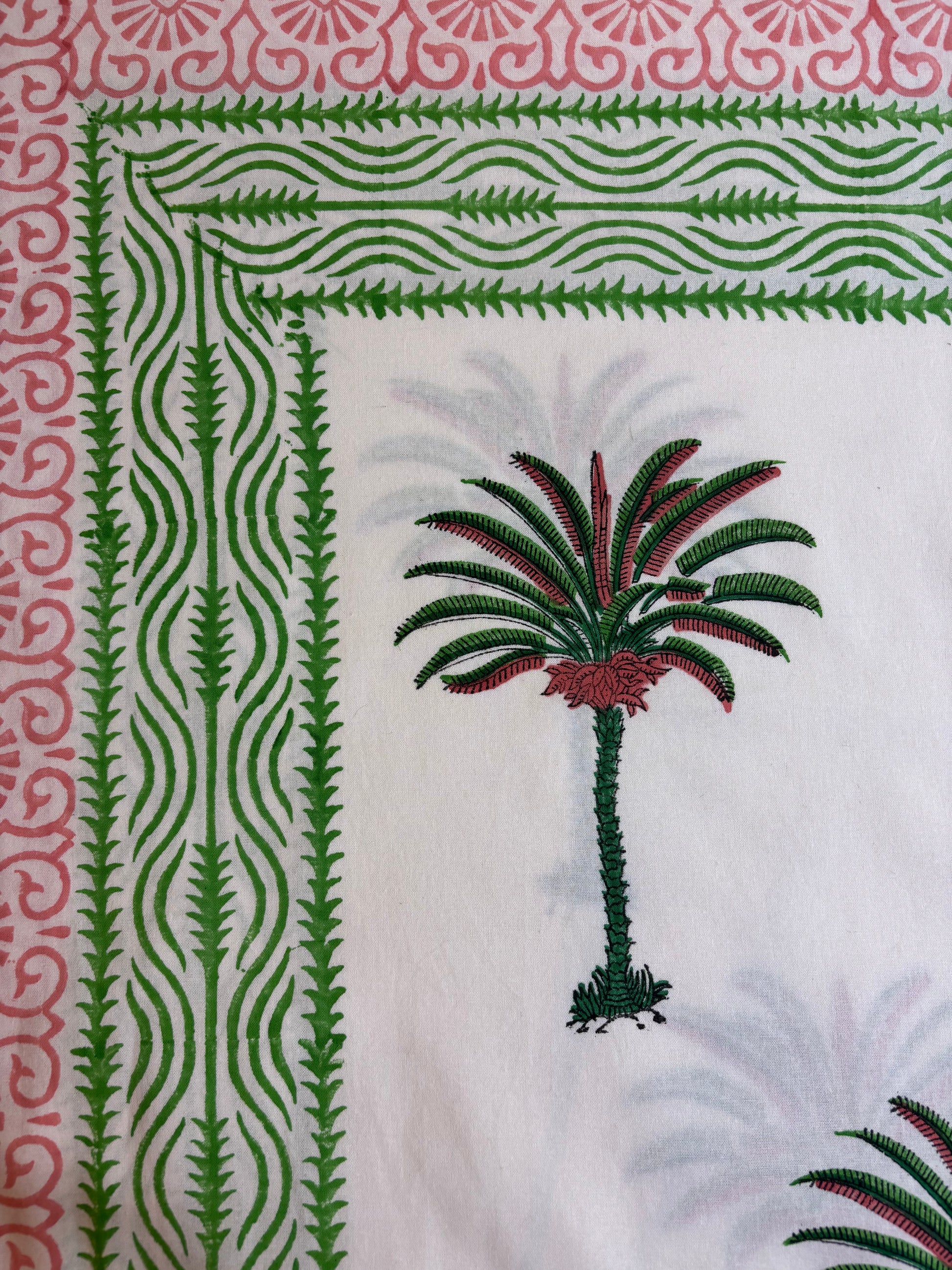 A la croisée de l'artisanat traditionnel et du design contemporain, nos nappes en coton imprimées au blockprint transforment chaque repas en une célébration de couleurs et de sophistication. La nappe exotica avec ses palmiers est un incontournable chez BloomParis. Elle apportera de l'exotisme à vos repas et à votre intérieur. Vendue avec 16 serviettes.
