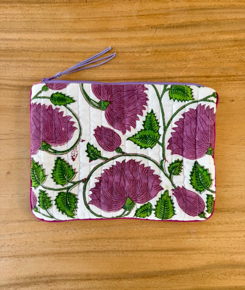 Cette grande trousse plate Nenuphar est idéale pour y mettre tous vos papiers, argent, maquillage, médicaments, clés...Elle est matelassée, bordée d'un passepoil et cousue à la main dans notre atelier parisien. C'est aussi un petit cadeau raffiné idéal.