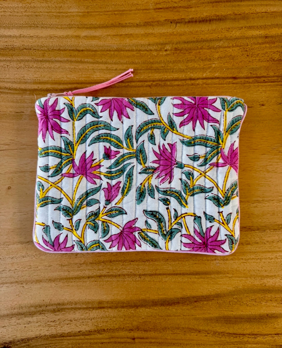 Cette grande trousse plate Petunia est idéale pour y mettre tous vos papiers, argent, maquillage, médicaments, clés...Elle est matelassée, bordée d'un passepoil et cousue à la main dans notre atelier parisien. C'est aussi un petit cadeau raffiné idéal.